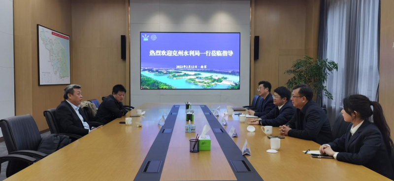 2月13日,新疆克州水利局党委书记邹健一行来江苏水源公司考察调研,江苏水源公司党委副书记李松柏、项目公司主要负责同志陪同调研。