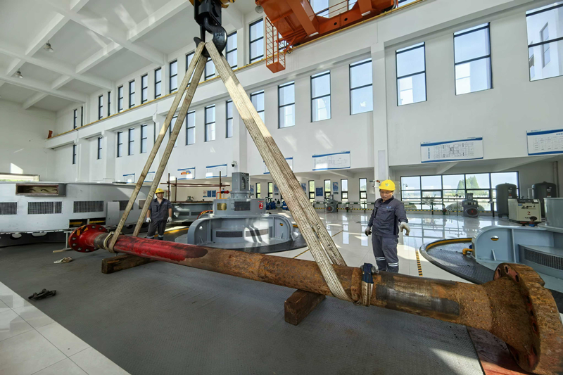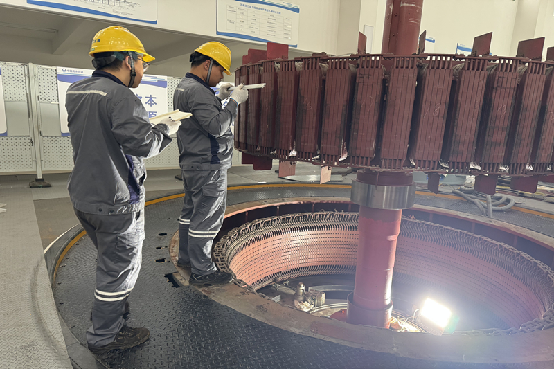 本次大修关键任务之一,是将原有的液压调节器升级改造为新型的“上置式同步液压调节器”。新系统高度集成化,优化了空间布局,解决了以往受油器漏油、保压难等问题,让后期维护时的部件更换效率提升50%。在调整机组轴线摆度时,成员趴在滚烫的机座旁进行反复校准,面对叶轮外壳的气蚀伤痕,他们一寸寸精心打磨、修补,直到金属表面恢复平滑;精准微调垫片厚度,将测量精度严格控制在0.01mm;检测导叶体水平度时,水平仪气泡被稳稳的停在0.02mm精度范围内。在关键工序验收环节,管理和施工双方共同到场、联合验收,对每道工序质量标准进行严格确认,为后期维护和安全运行提供更有力的保障。