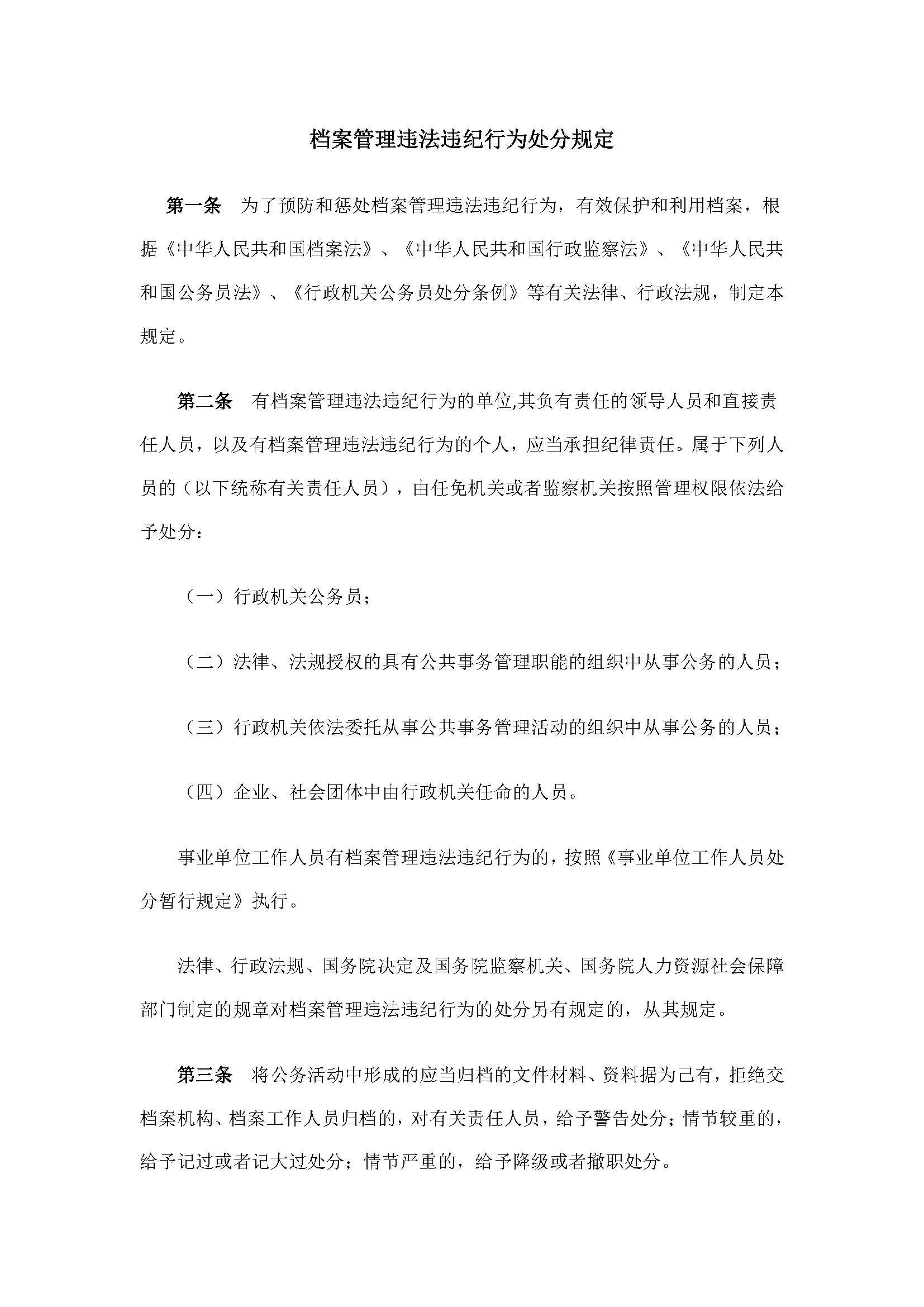 《档案管理违法违纪行为处分规定》档案局30号令