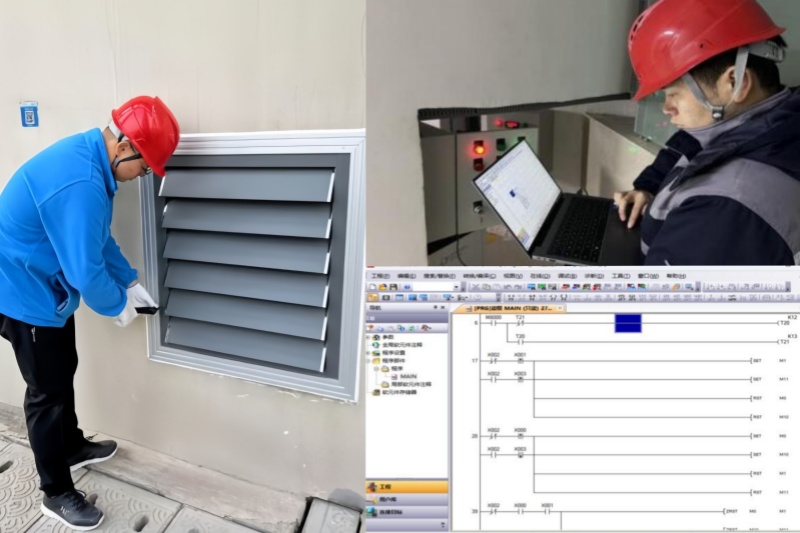 创新的善思起于生产实践,落于安全运行,助力着工程效益的充分发挥。为使机组具备随时可投运的条件,针对开敞式电机在环境湿度较大时绝缘性降低,不满足开机运行电机干燥绝缘要求的情况,淮安分公司所辖淮阴三站“内强筋骨”聚焦智能低耗阻燃暖风机应用,装设小功率低耗能控制回路,长期保持主电机绝缘合格;洪泽站“外御风邪”研究主电机风道自动密封装置,通过电动百叶窗装设、自主软件编程、国产化运行监控系统 IMC信号接入,实现主机风道口与开停机联动密封,以相对密闭空间保证了开敞式电机的绝缘性能,为辖管工程随时投运、发挥工程效益创造良好绝缘条件。